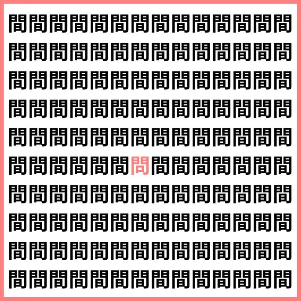 たくさんの「間」の中に、1文字だけ違う漢字が混ざっています。