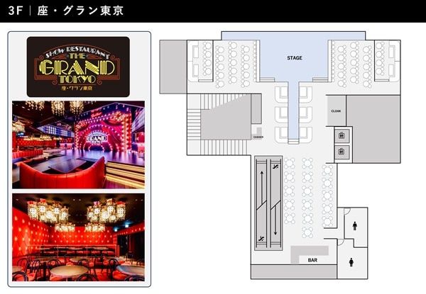 「グランハマー」の3階にある「座・グラン東京」は、これまで一般の飲食店では体験することができなかった、臨場感たっぷりのエンターテインメントショーを楽しむことができるエリア。食事やお酒を楽しみながら、中央に設置された大型LEDビジョンに囲まれたステージで様々なエンターテインメントショーのライブ体験ができる。