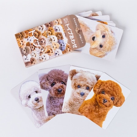 写真カードは、わんこ業界でもトップクラスの人気を誇るトイプードル25頭をカード化。漫画家・やしろあずきさん、作家・岸田奈美さん、中野「BaRプードル」店主・高山洋平さんといった著名人の愛犬も参加している。さらに予備の無地カードに愛犬の写真をシールプリントして貼ることで、オリジナルのカードを作成することも可能だ。