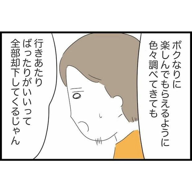 下調べせずに旅行に行き、思いつきで行動しようとするゆっきー。恋人は付き合ってくれますが、ゆっきーはわがまま放題な上に、思い通りにならないことに文句ばかりを並べます。