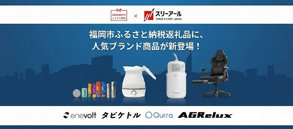小型家電やライフスタイル商品の企画・販売を行うスリーアールの人気ブランド商品が、12月12日(金)より、福岡市のふるさと納税の返礼品に追加された。