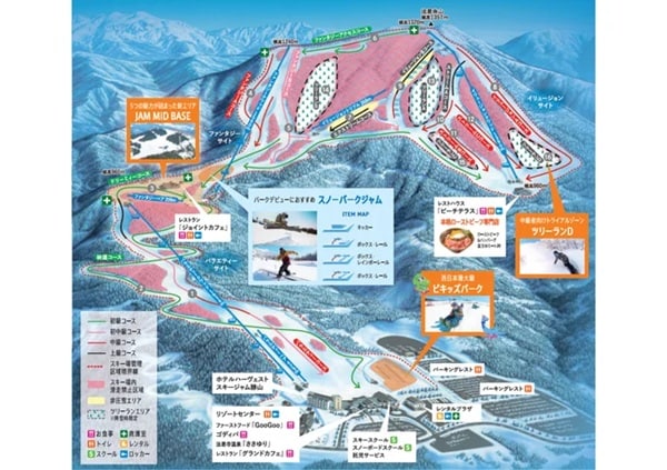 エリア内にはノンスキーヤーが快適に移動できる「スノーRAXI」や、新アクティビティ「スノーラフティング」 も登場。スノーラフティングは、スノーモービルに牽引されたラフティングボードに乗って雪上を駆け抜ける、スリル満点の体験を楽しめる。また、エリア内にはコースインレストランがあり、ゲレンデを一望しながら食事ができるのも魅力だ。なお、「JAM MID BASE」に行くためには第1クワッドリフトのリフト券、スノーラフティングには別途料金が必要だ。
