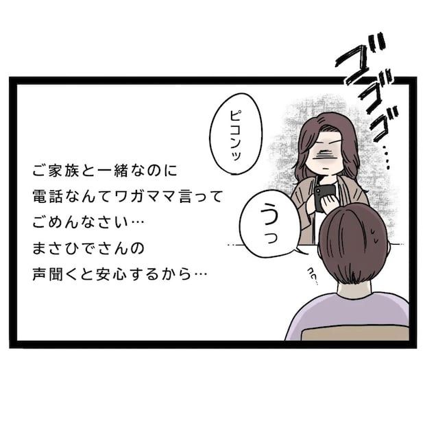 「ご家族と一緒なのに電話なんてワガママ言ってごめんなさい・・。まさひでさんの声聞くと安心するから・・」