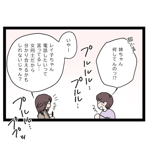 そして「姉ちゃん、何してんのっ!?」と小声で言うまさひでに、「いやー、レイ子ちゃん電話したいって言ってるし・・女同士だから分かり合えるかもしれないじゃん?」と笑顔で答える私。