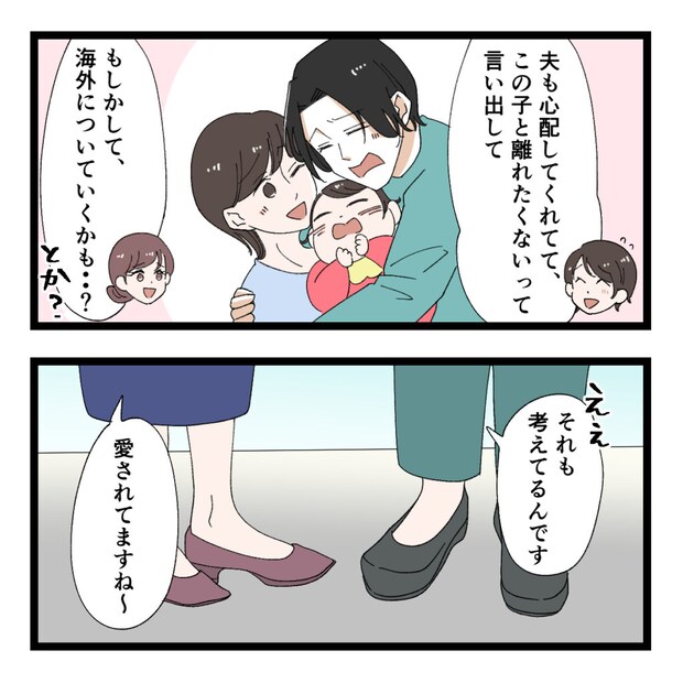 「夫も心配してくれてて、この子と離れたくないって言い出して」マイさんの言葉に、「もしかして、海外についていくかも・・?とか?」アユミさんがたずねると、「えぇ。それも考えてるんです」マイさんの言葉に、「愛されてますね~」とアユミさんが言うと、