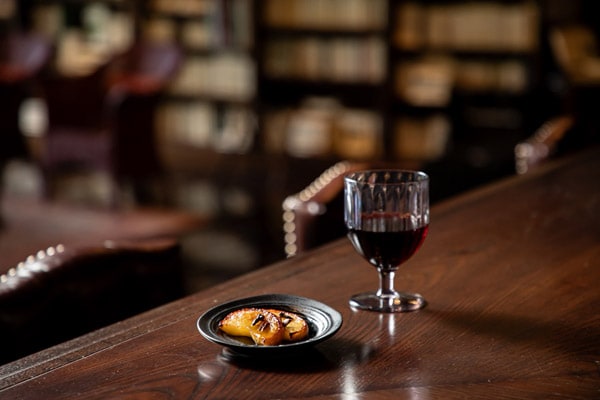一つは、ウインタートリート(冬のご褒美)の提供。焼きりんごとホットワインを蔵書ラウンジにて楽しむことができる。