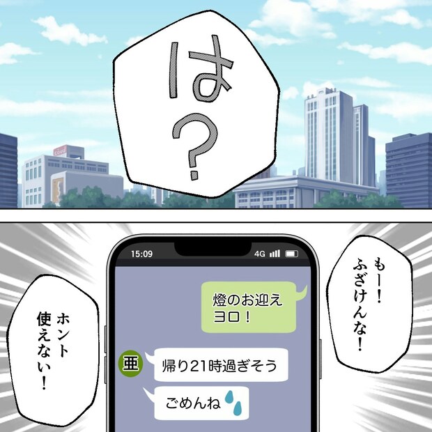 今朝は時間に余裕があったので、子どもを保育園に送っていけるはずだった亜馬斗。「のんびりしたいから」という理由で、すべてをウル実に押し付けていました。ならば、せめてお迎えは行ってほしいと頼むウル実でしたが…。