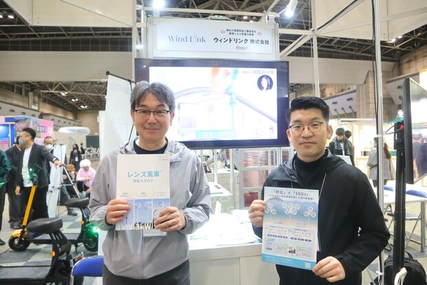 九州大学で研究開発された技術を実用化し、日本発の小型風力発電機「レンズ⾵⾞」を製造・販売するウィンドリンク株式会社。