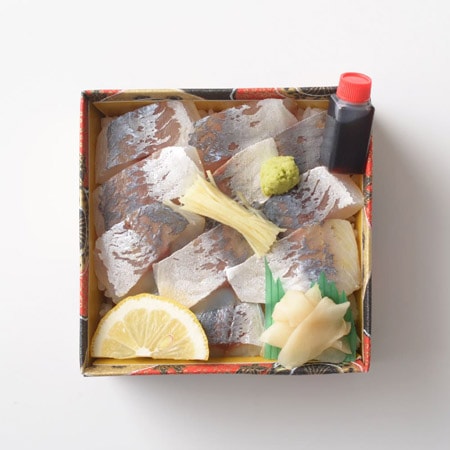 昼食は自由食だが、オプション(別料金)として「名物 武士のあじ寿司」1,800円の昼食弁当が用意されている。