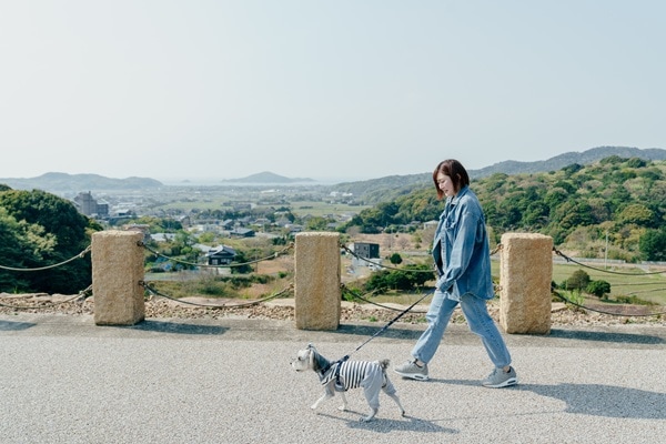 棚の自然を満喫できるお散歩コースで、愛犬と一緒にリフレッシュすることも。響灘にぽっかり浮かぶ厚島を見渡せる青龍湖こと舟郡ダムは1周1500mの周回道路があり、朝の散歩にぴったりだ。