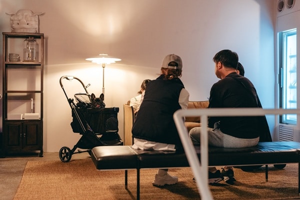 チェックインから愛犬と一緒に過ごせるラウンジ