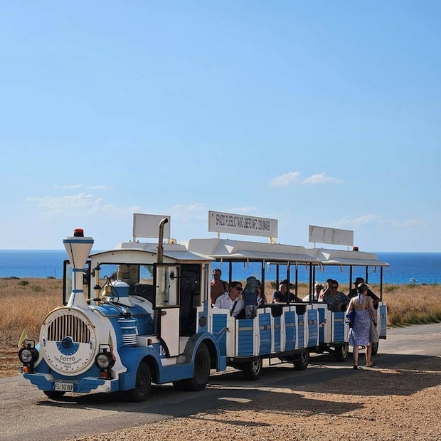 自然保護区になっているため、車での出入りが禁止。海で遊ぶには船で海岸線に近づいたり、バカンスシーズンに走る汽車に乗る必要があります。シチリア伝統の馬車を思わせるカラフルな汽車は、子どもや高齢者に人気。とことこ走る汽車はおもちゃのように可愛らしく、シチリアの風景に馴染みます。