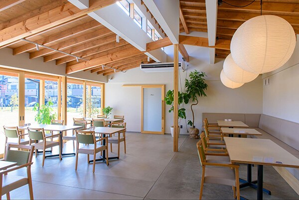 公園の景色を眺めながら、世代を問わずゆったりとした時間を楽しめる。