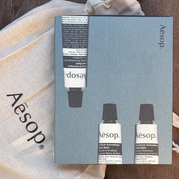 Aesopのハンドクリームがとても好きなんですが、とにかく大きかった。もちろんそれも悪くなかったんですが、持ち運ぶ時は結局コンパクトな物を持って出たり…小さいサイズがあったらなぁ。と思っていた矢先に、まさかの人気の3種類がミニサイズでセットに!!