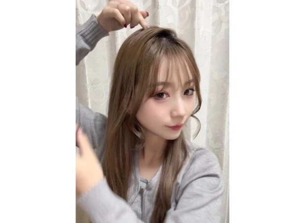 先ほど分けた7の方の毛束を、さらに2つに分けます。
