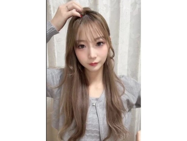 ③ 7の方の毛束を耳の後ろの位置でさらに分け、後方の毛束を仮留めする
