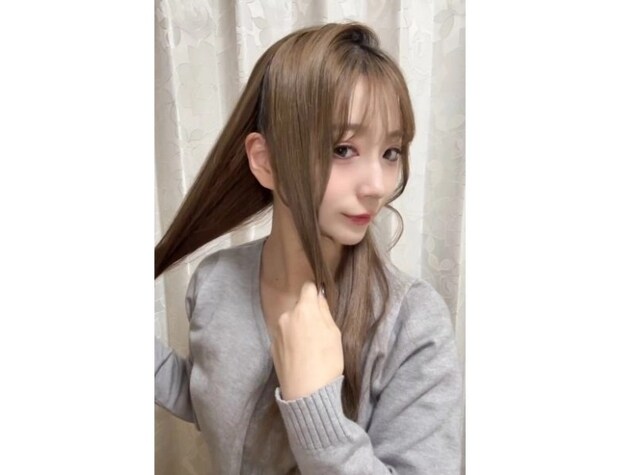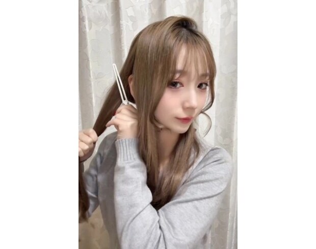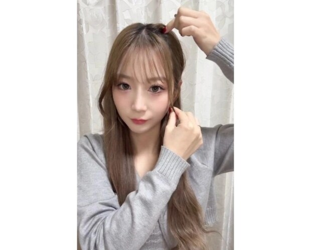 耳の後ろくらいの位置で縦に2つに割ってください♪