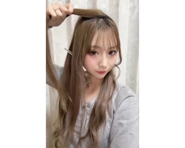ゴムで結んだら耳の後ろに毛束ごとかけてくださいね。