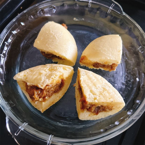 基本アレンジには否定的で、そのまま食べたほうがおいしいと主張するわが家の男性陣なのですが、「うまっ、え、カレーまん?」と、かなり驚いていました(笑)。