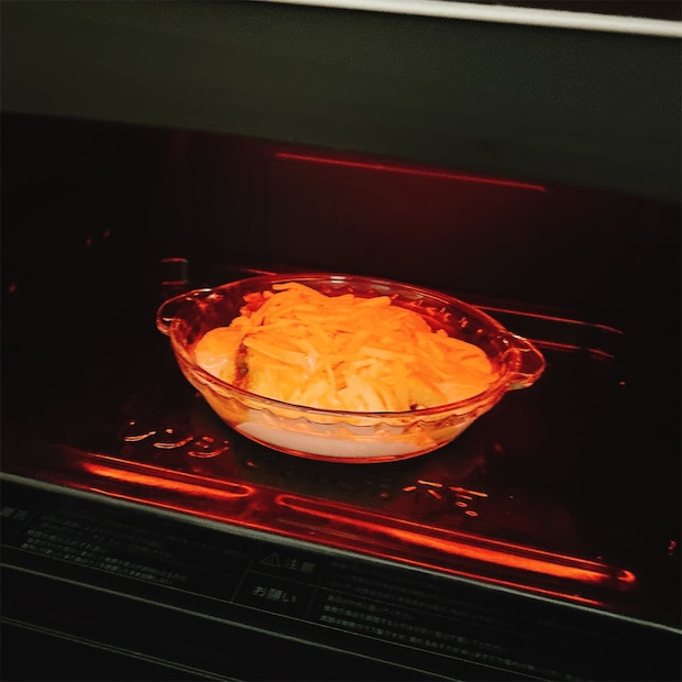 4. オーブンやトースターで、表面がこんがり色づくまで焼く。