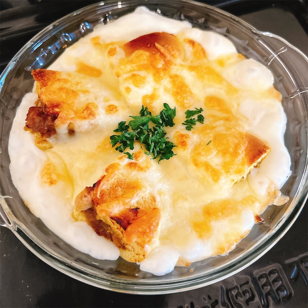 混ぜて焼くだけ!簡単「カレーまんグラタン」レシピ