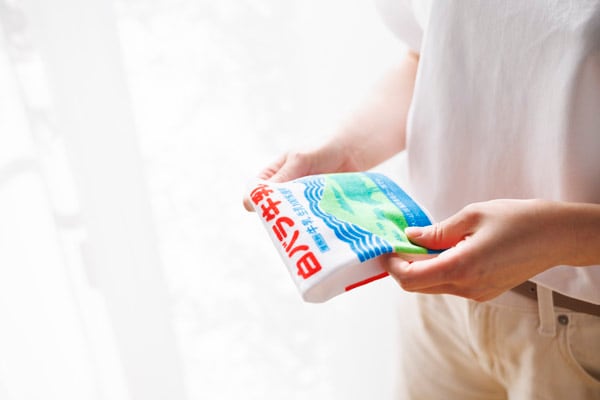 サイズは縦横約25㎝、素材は綿100%。毎日の暮らしで使いやすいサイズなので、外出にも家の中でもずっと「白バラ牛乳」と一緒に過ごすことができる。