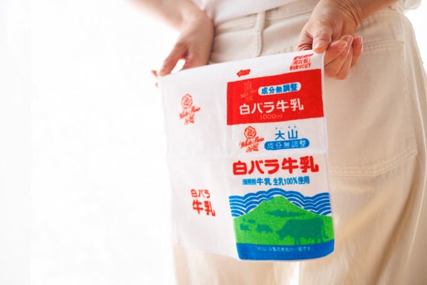 「白バラ牛乳ハンドタオル」の公式オンラインストア限定セットを手に入れて、乳製品を味わいながらハンドタオルを使って、鳥取とつながってみては。