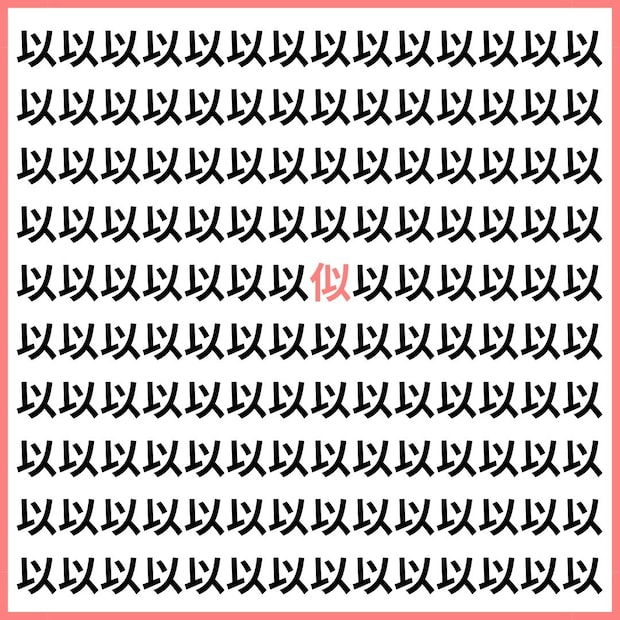 たくさんの「以」の中に、1文字だけ違う漢字が混ざっています。