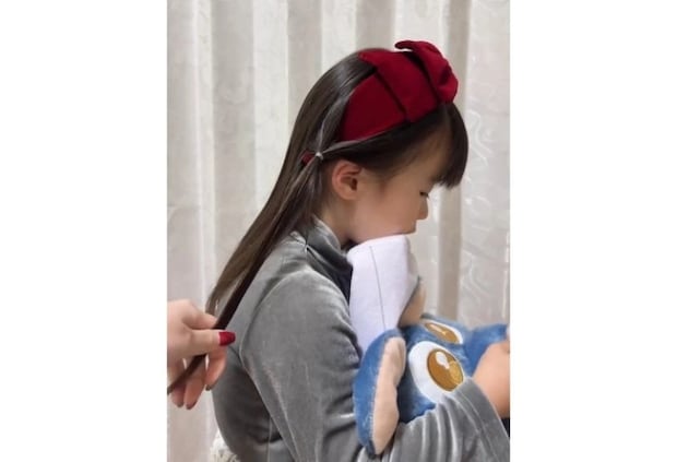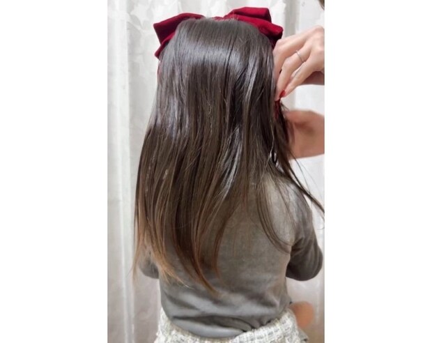 髪がまとまったら早速カチューシャをつけます。