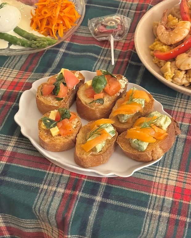 @mai_16skさんは、スモークサーモンとアボカドのブルスケッタ、トマトのガーリックブルスケッタの2種類を用意。カラフルでどれから食べようか迷っちゃいますね。
