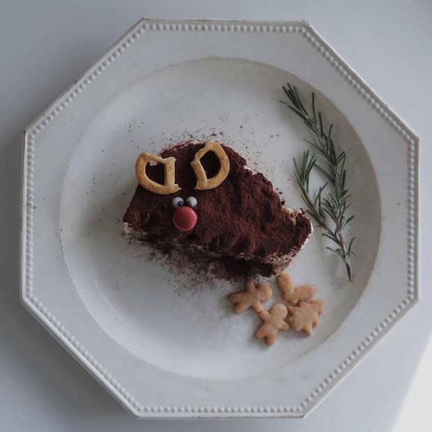 コーヒーとマスカルポーネがやみつきになるティラミス。デコレーションしてトナカイを作ってみるのはいかがですか?