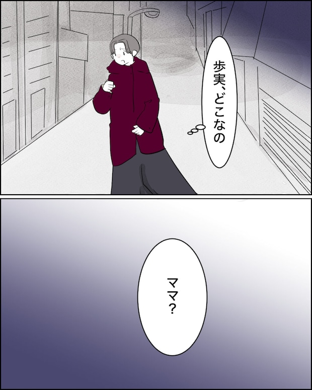 歩実、どこなの?通学経路を早足で進みながら歩実の姿を探していると、「ママ?」と歩実の小さな声が聞こえました。