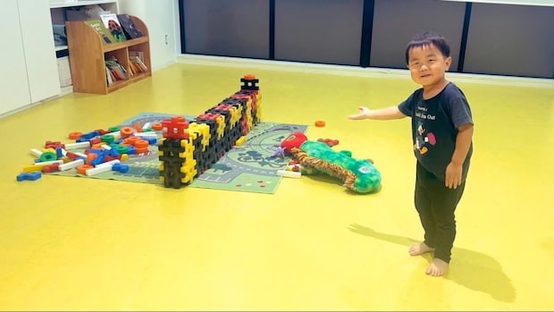 投稿者・みさきさんは、延長保育中の3歳の息子さんのお迎えに向かったそうです。そこには延長保育を思いっきりエンジョイする息子さんの姿があったそう。