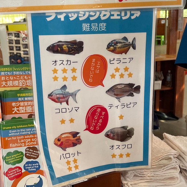 最後はフィッシングエリアです🎣大きな生簀が6つも‼️受付で竿と餌を借りてレベル別の生簀へ🐟