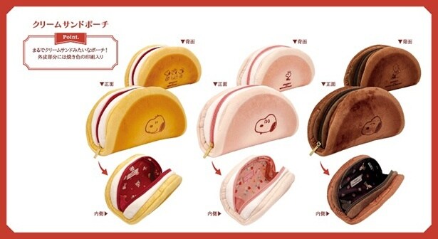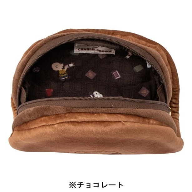 こんがりとした焼き目まで再現された「クリームサンドポーチ」(各2970円)は、スヌーピーたちの焼き印風アートがアクセント。ファスナーを開けると総柄の裏地が見えるのも楽しい。