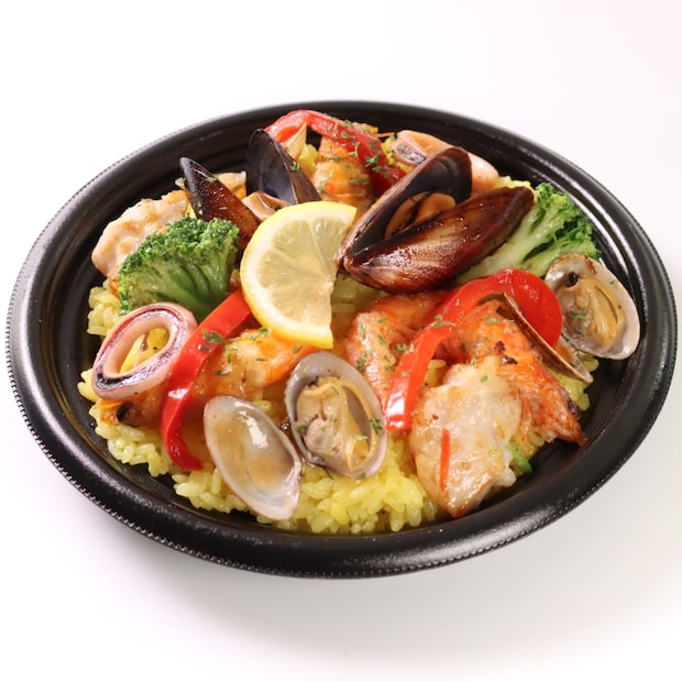 サフラン香る「パエリア」は、えび・いか・ムール貝・あさりなど4種の魚介を使用。炊き上げた米に魚介の旨みがたっぷり詰まった本格派の一品としている。