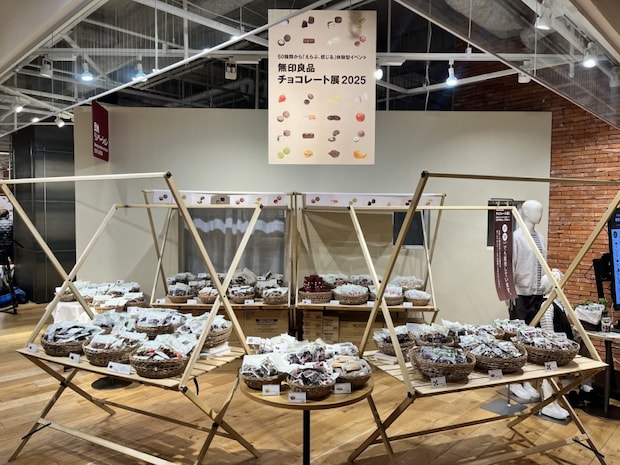 良品計画が運営する無印良品は、12月19日から25日までの期間、銀座店とグランフロント大阪店で「チョコレート展」を開催する。「チョコレート展」は2025年1月に初開催し、12月3日から全国6カ所で開催してきた。今回の銀座店とグランフロント大阪店の2カ所が今年最後の開催となる。グランフロント大阪店ではネット予約(各時間20人)と店頭による整理券配布(毎日600人)で誰でも無料で参加ができる。