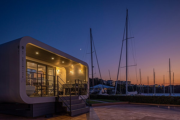 オーシャングランピング施設「スペースキーポイント リビエラシーボニアマリーナ」では、冬ならではのグランピングを堪能できる。完全貸切制のテントサウナで、ハーバー越しのサンセットと富士山に癒されながらととのう極上時間や、焚火を囲んでのスモア、プライベートデッキでの鍋などが楽しめる。