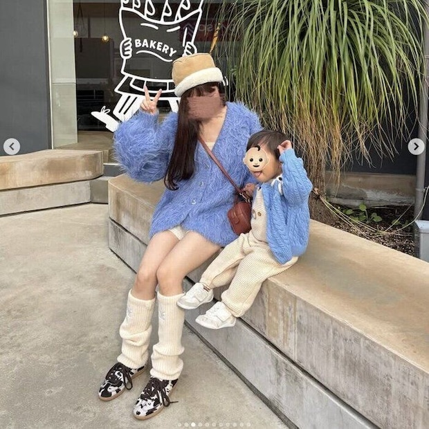 yuririnさんは、こちらのコーデを。ブルーのニットとオフホワイトの色味を合わせており、一目でリンクしているのがわかりますよね!毎週末、親子でおそろいを楽しんでいるんだとか♪ 仲良し感が伝わってくる素敵なお写真ですね。