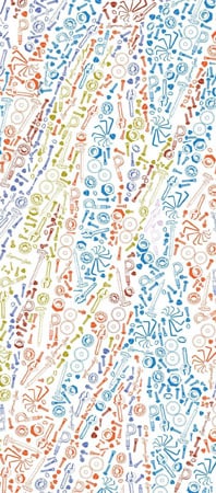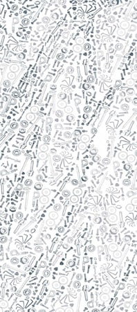 商品には、製造業といえばコレ!というアイテムを社員にヒアリングし、歯車/ねじ/ボルト/ノギス/マイクロメータ/六角レンチなど、“ものづくり”を象徴するアイテムを螺旋状にデザインした。
