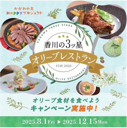 かがわ県産品振興機構は、8月1日(金)〜12月15日(月)に開催した、香川県の名産品・オリーブ関連食材を使って、県内100店の飲食店がお薦めメニューを提供するキャンペーン「香川の3ツ星オリーブレストラン」を地方を旅するクリエイター「らんさん」が巡り、SNSで発信したことを発表した。