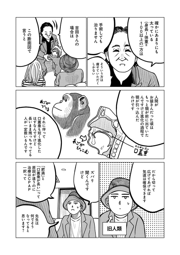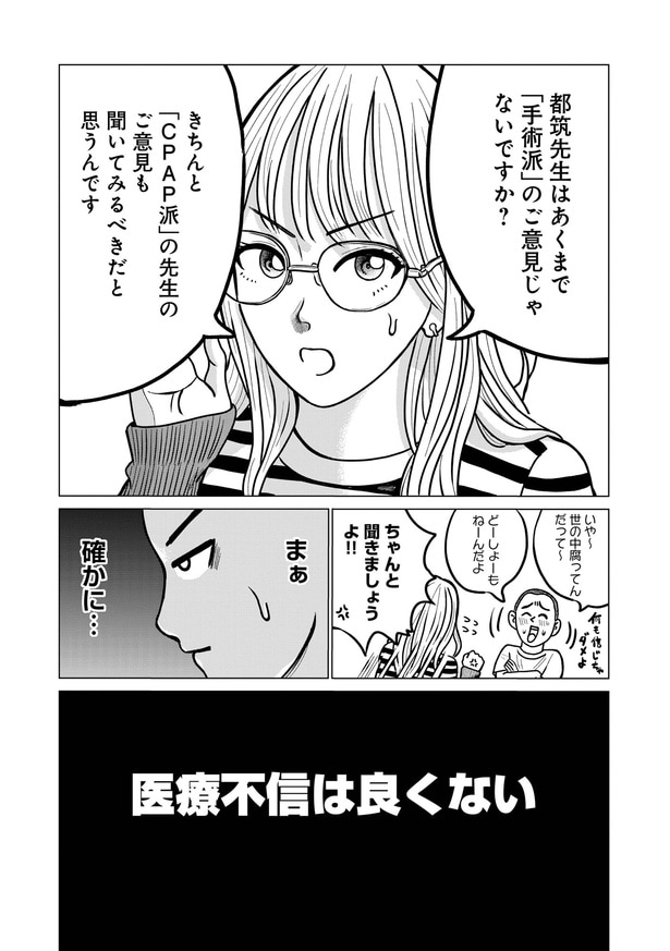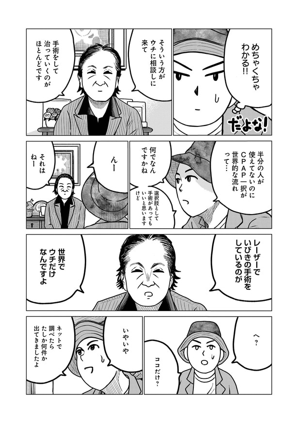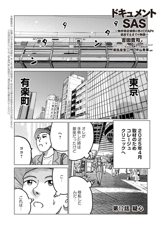 2025年12月19日 【漫画】“無呼吸=CPAP治療”のギモンを手術担当医にきいてみた/ドキュメントSAS~無呼吸症候群の男がCPAPを返却するまでの物語~(12) WEBザテレビジョン 「SAS=睡眠時無呼吸症候群」と診断された漫画家・吉田貴司が、自身の治療体験を赤裸々に描いた実録ドキュメンタリー。治療を始めたきっかけから、過程、そして卒業まで…“いびき”と向き合う姿を笑いと学びを交えてお届け! 手術担当医に“CPAP”について尋ねた著者がある一つの結論にたどり着く…。 ■第12話 (C)KADOKAWA/吉田貴司