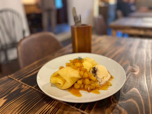 こちらはデザート系クレープの「りんごのキャラメリゼクレープ(1300円)」。
