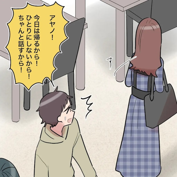 何も言わずお店を出て行こうとする私に「アヤノ!今日は帰るから!ひとりにしないから!ちゃんと話すから!」とトモヤが焦った様子で言いました。