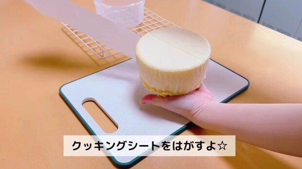 約1時間後冷蔵庫から出してラップを外します。切り分ける包丁は熱湯でしっかり温めて水気をとってから使いましょう。