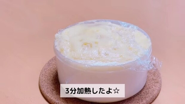 500Wの電子レンジで約3分~3分30秒加熱します。