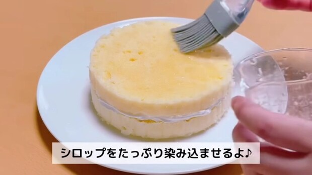 通常のスポンジケーキよりもパサつきやすいため、シロップをスポンジに染み込ませてパサつきを防ぐのがポイントです。
