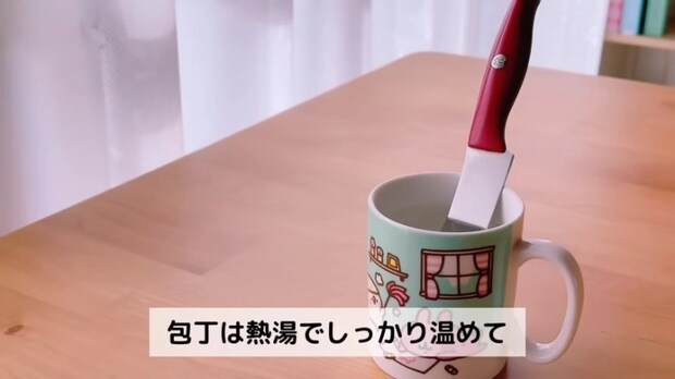 包丁はカットするたびに熱湯につけるときれいにカットできますよ♪