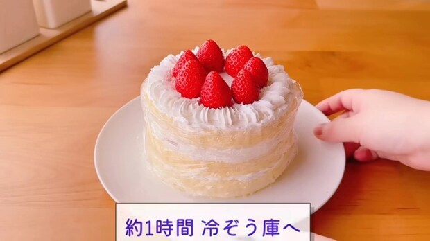 乾燥を防ぐためラップを側面に密着させて冷蔵庫で1時間ほど冷やしましょう。