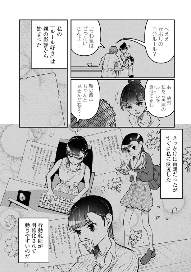 大学院を卒業して入社3か月を迎えた花村かおりは、ある日たまたま同じ部署の部長と直属の上司である先輩がホテルから出てくるのを目撃してしまった。2人は既婚者。驚きとショックを隠せない花村だったが2人からは「オープン・リレーションシップ」、いわゆる夫婦公認のセフレ関係だと明かされる。はじめは理解に苦しんでいた花村だったが、2人と関わっていくうちに不倫とは異なる2人の関係に理解と興味が沸いてきて…!?